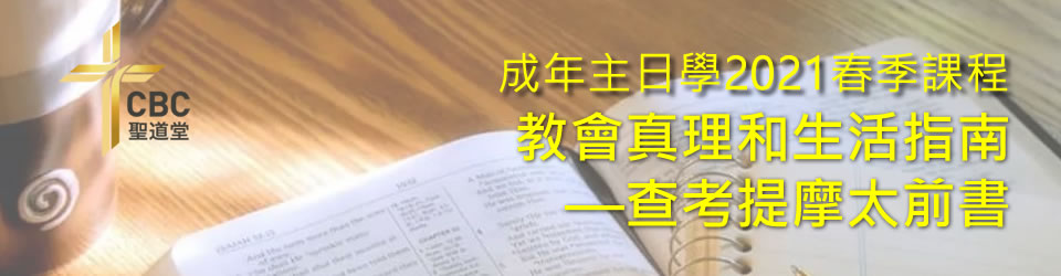 成年主日學2021春季課程 April 10, 2021 by admin 教會活動 Calendar 活動詳情 This event finished on 27 June 2021 誠懇的邀請你報名加入成年主日學! 成年主日學 2021 春季課程, 上課開始日期: 2021年4月11日: 主題: 教會真理和生活指南—查考提摩太前書 鼓勵弟兄姊妹們參加,讓我們一起學習和討論,認識神的話! 時間 : 9:00am to 10:00am